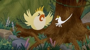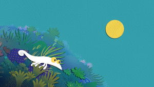 A small white chameleon wanders through the colourful jungle in search of a place to blend in.