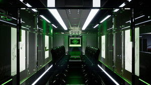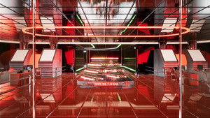 Nøtel explores the dark humour of automated hospitality and corporate aesthetics. Originally started as a series of audio-visual performances with electronic musician Kode9, the project has developed into physical manifestations. These contain a video-game realm—accessed through VR headsets, monitors, and game controllers—which revolves around the fictional Nøtel Corporation. This conglomerate embodies the concept of fully-automated hotels, with AI technology catering for every whim. Accompanied by the CEO’s voiceover, players explore the spaces of the Nøtel, encountering sprawling chambers, robotic servants, and ghostly holograms.