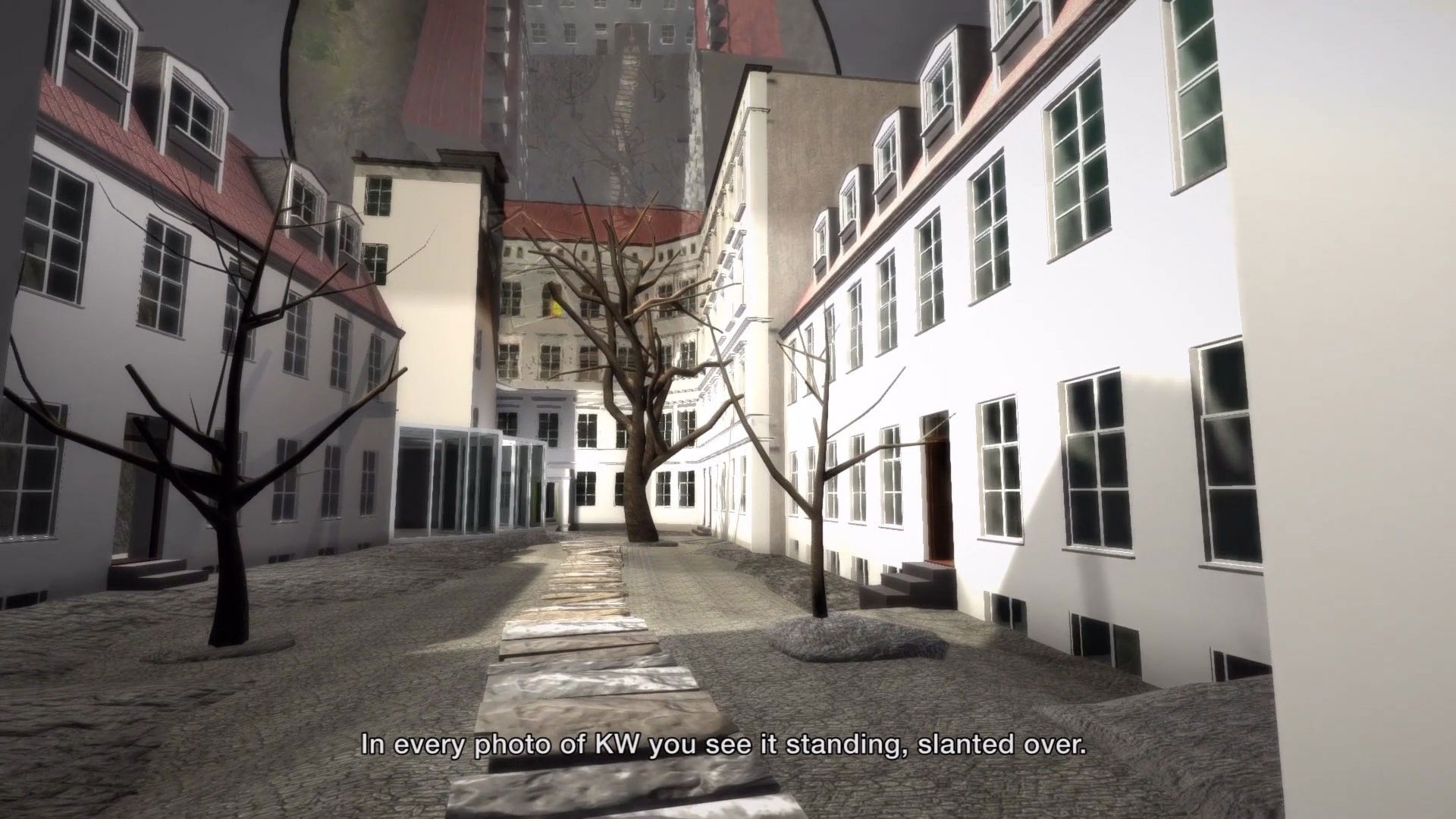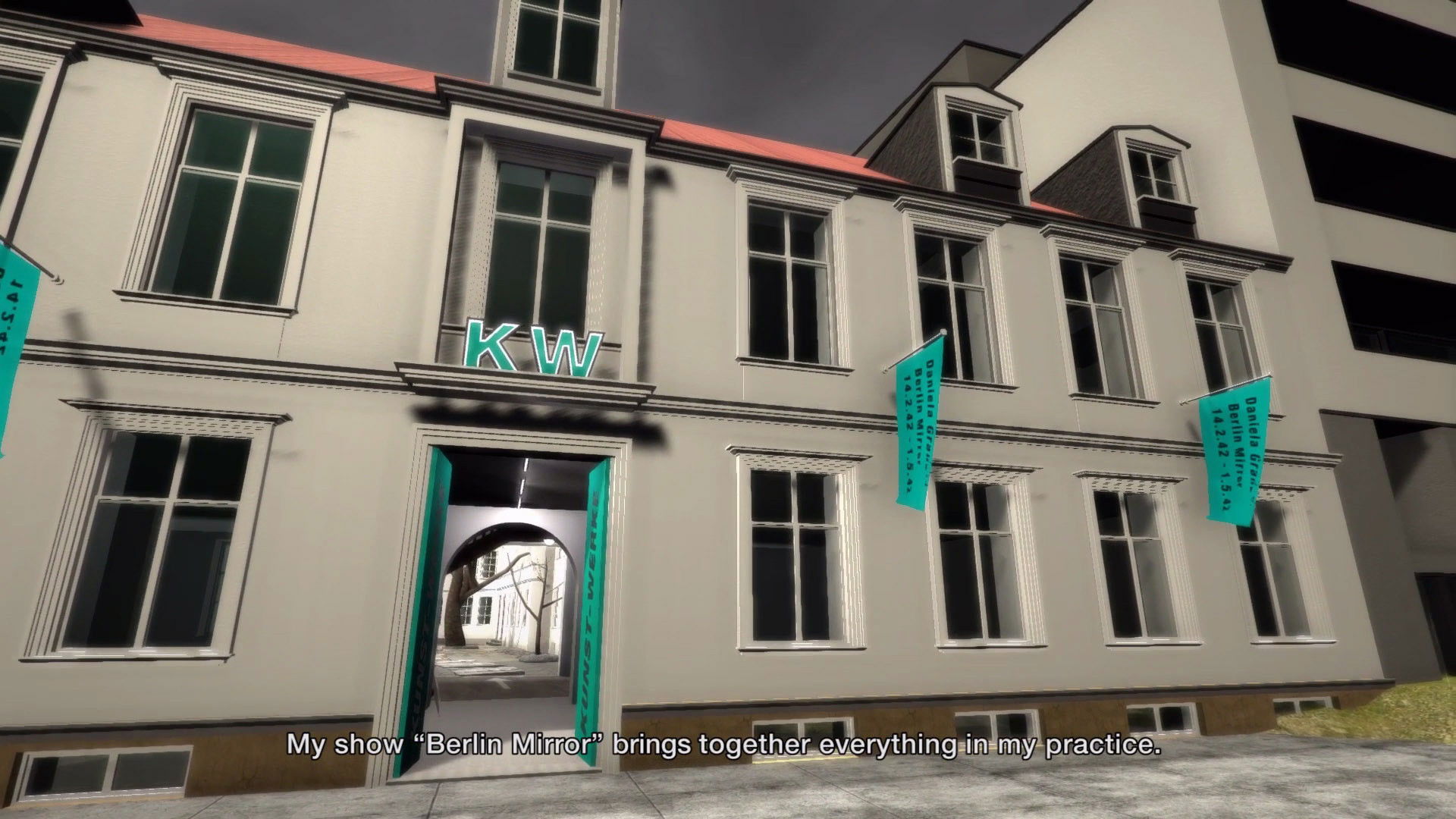 Her practice is based on American artist Dan Graham (who created the Cafe Bravo installation at KW), but imagined as if he was born in Berlin in 1942 instead of Illinois. Here, Graham's artistic preoccupation with materiality and space is tied together with the weight of history.