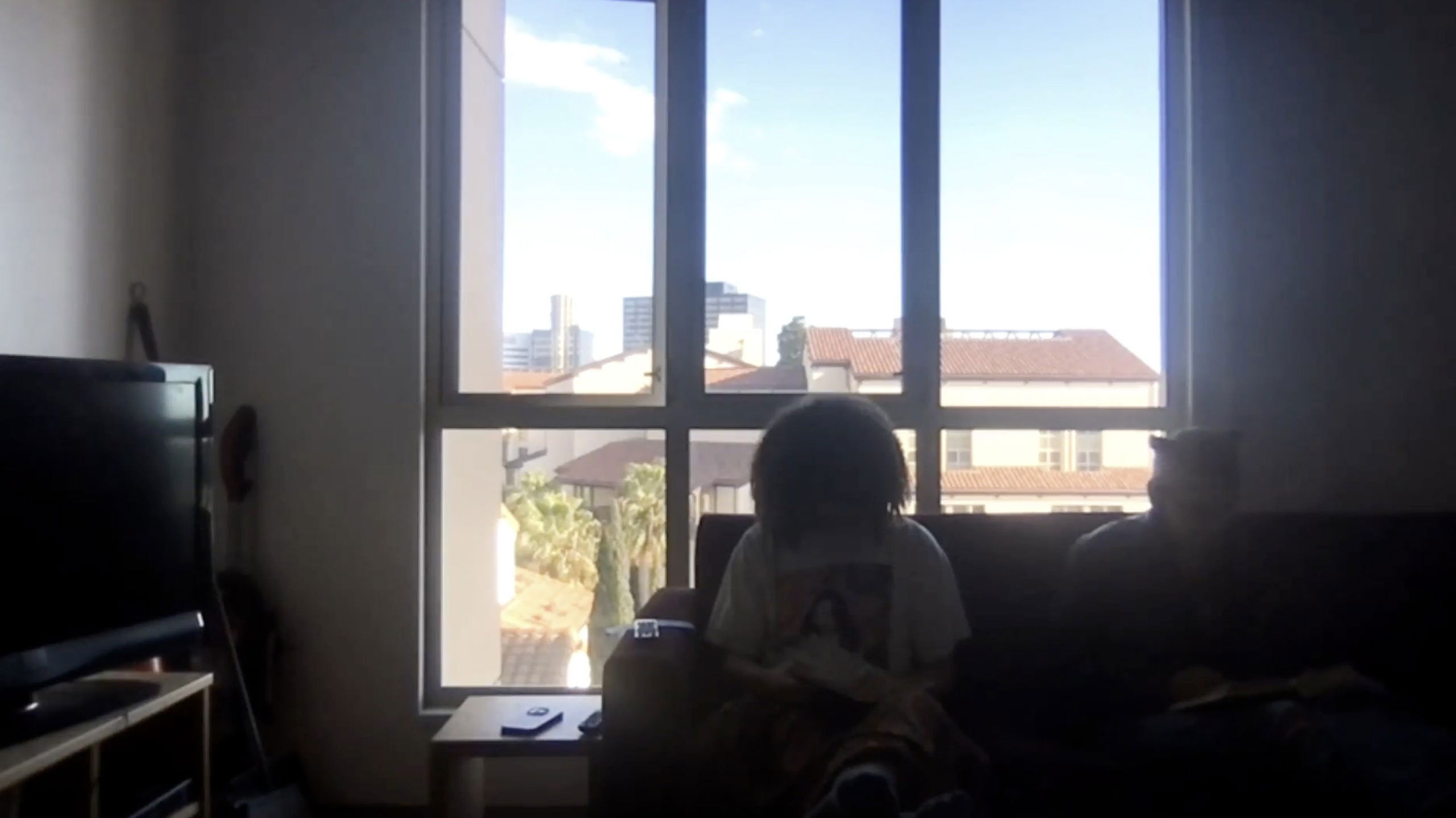 A offscreen figure watches a recording of people individually reading and then together watching The Long Day Closes (Terence Davies, 1992).