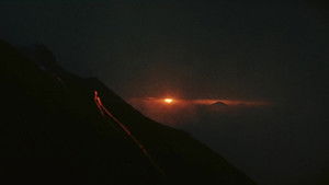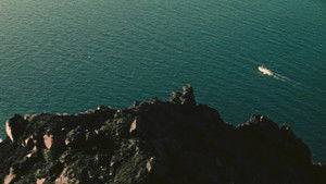 The first light of dawn. The sound of a boat and the screech of birds fill the wide expanse of sea. Black rocks emerge from the water, the “sciara” – the volcanic scoria – of Stromboli, the underwater sulfurous emanations, the layers of reddish rock eroded by the sea. The roar of the volcano can be heard, the flames and the liquid lava are thrown skyward. As nature unleashes itself, the fishermen row toward the shore, the sheep stray and the women return home.