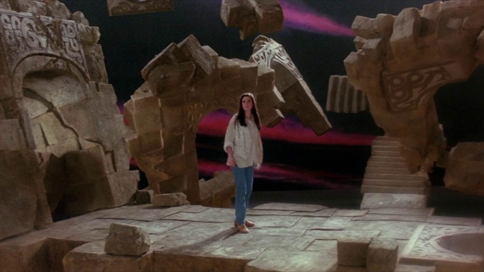 When Sarah is forced to babysit her half-brother Toby, she inadvertently summons the Goblin King who whisks Toby away to his castle at the center of a labyrinth. Sarah enters into a bargain with the Goblin King where she is given just thirteen hours to solve the labyrinth and rescue Toby, or else lose him forever.