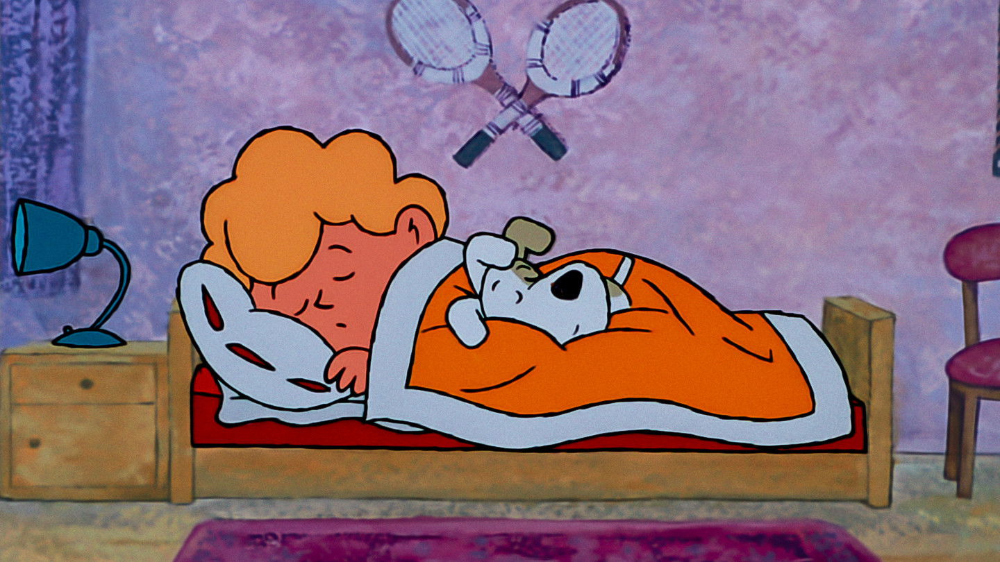 Rex and his master (a boy) read a mushroom atlas together, then they set out for the forest. The dog is very careful, sniffing for edible mushrooms. After some time, he finds a huge boletus. Rex can’t believe his eyes – there’s a dwarf underneath a toadstool. A storm blows up, the friends go home.