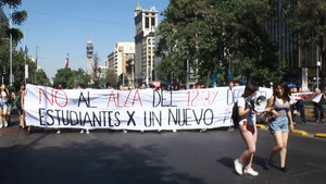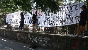 Mobilization of students of the University of Chile against the increase of fees, from "Casa Central" to "Torre 15".