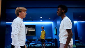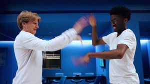 Two friends watching a movie realize that they are out of chips—except for one.