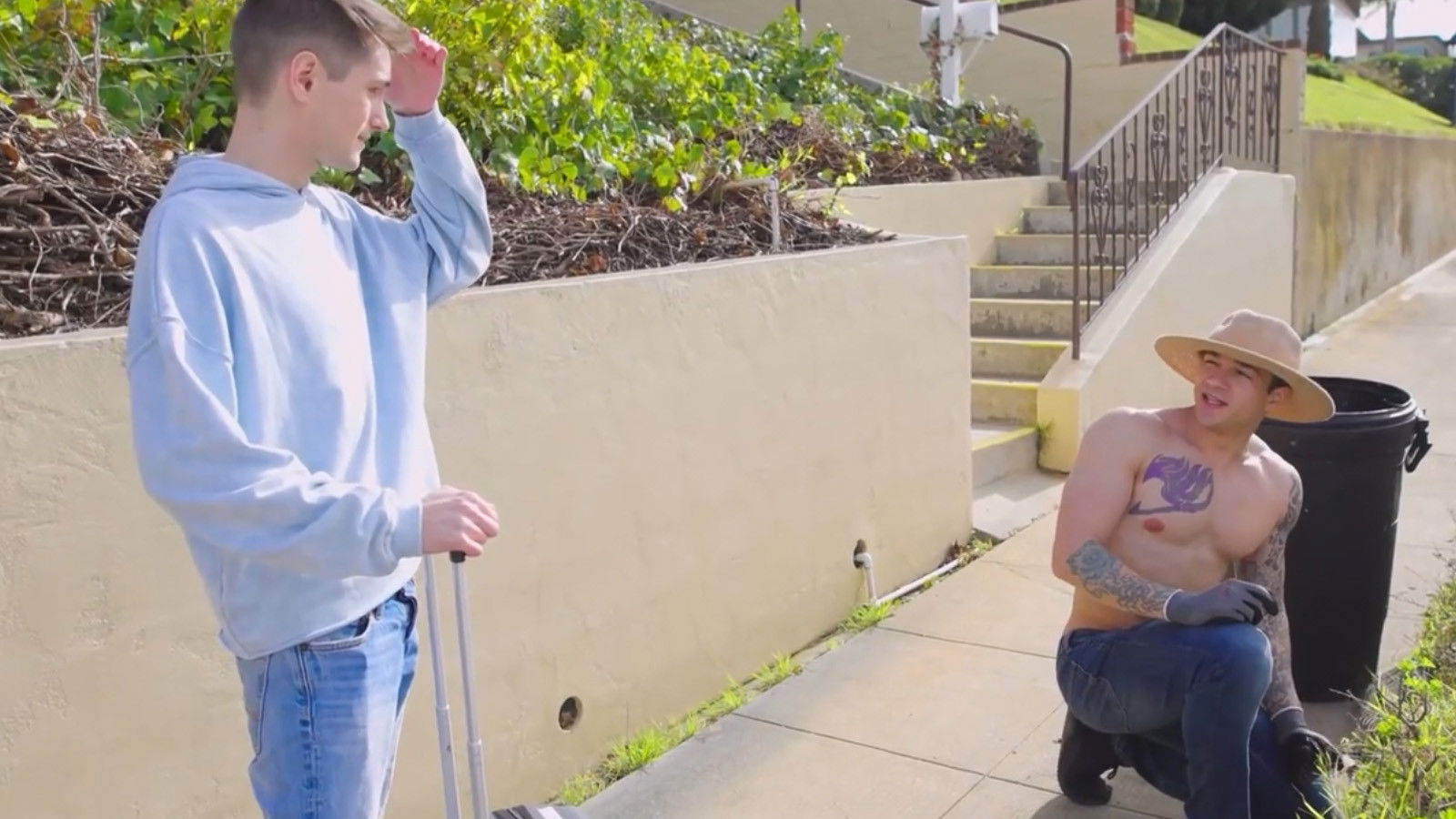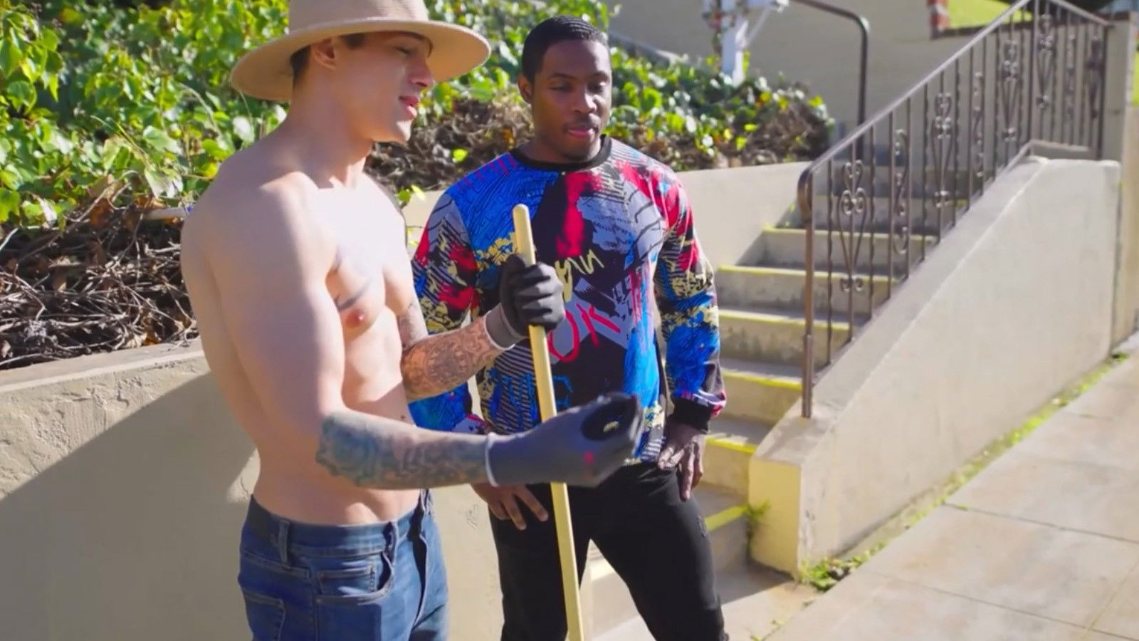 Tim Sanderson (Trevor Harris) is supposed to stay in the AirBNB next door to Greg and Max Lakewood (DeAngelo Jackson and Jayden Marcos). They intercept him and tell him not to go into the AirBNB because they're into strange sexual cult shit. Tim trusts them and stays with them instead. The problem is, they aren't who they said the neighbors were. The problem is, they are The Freaks Next Door. Scene 2: Eat My Ass Does It Fit esque, stepfather (Dale Savage) & stepson (Eric Charming) fighting, full asshole tongue, shame, Eat My Ass,