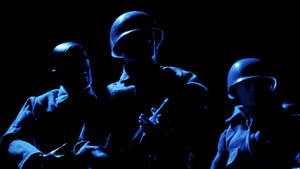 Window shopping children watch as toy soldiers come to life and fight a war with all its unvarnished ferocity and horror.
