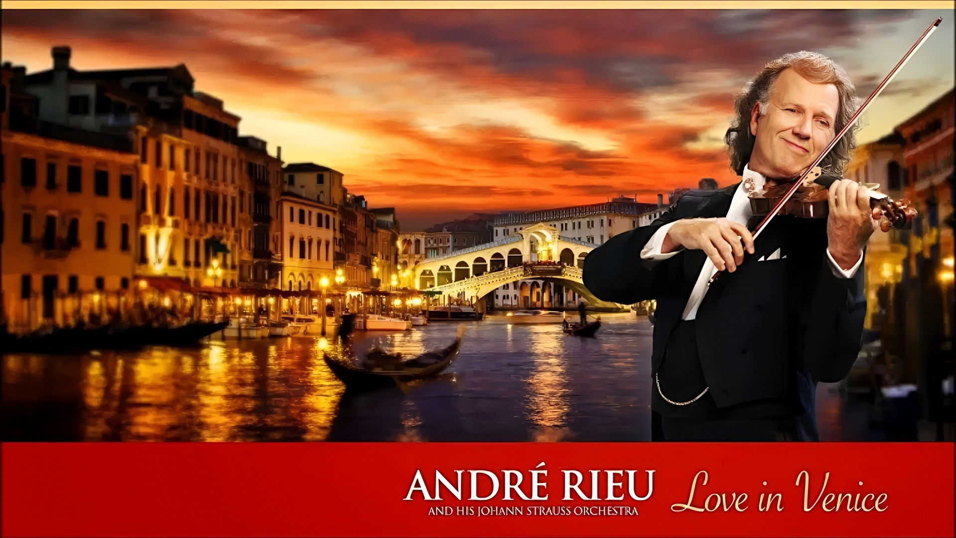 The Vrijthof concerts have been going for ten years and this anniversary was all the excuse André Rieu needed to make things extra festive and put on a fantastic, unforgettable anniversary concert with his new DVD, ‘Love In Venice’ – a selection of favourites from the concert. For this tenth concert series he had the Vrijthof square specially decorated in Venetian style, complete with a Doge’s Palace, Rialto Bridge, a fabulous Italian fountain and a colourful Venetian masquerade and it was a party from start to end. Love In Venice is an evening full of wonderful Italian music, world hits like Funiculi funicula, Tiritomba and Vieni sul mar and fabulous operatic arias. For the occasion of this anniversary, the Italian singer Rocco Granata came to sing his world hit Marina. Thanks to the perfect sound and image recordings on this DVD you can enjoy it at home just as though you were there yourself.