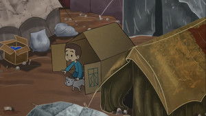 The happy life of a Syrian kid alters instantly with the sudden war and he finds himself in a state of struggle. The war changes not only lives, but also the role of his box; first as a carefully built toy house, then as a place to take shelter in a refugee camp with full of dangers and finally as a boat that sails for a journey towards hope.