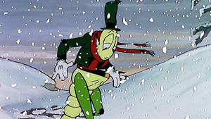 As in the classic fable, the grasshopper plays his fiddle and lives for the moment, while the industrious ants squirrel away massive amounts of food for the winter. With his song, he's able to convince at least one small ant until the queen arrives and scares him back to work. The queen warns the grasshopper of the trouble he'll be in, come winter. Winter comes, and the grasshopper, near starvation, stumbles across the ants, who are having a full-on feast in their snug little tree. They take him in and warm him up. The queen tells him only those who work can eat so he must play for them. Written by Jon Reeves
