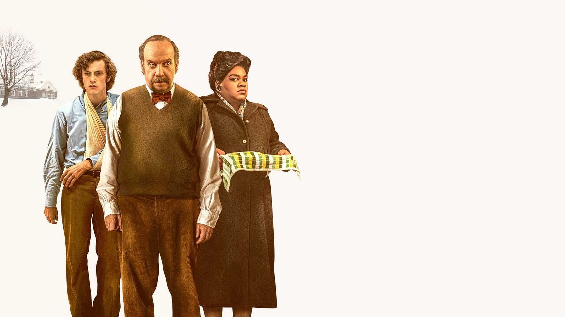 A curmudgeonly instructor at a New England prep school is forced to remain on campus during Christmas break to babysit the handful of students with nowhere to go. Eventually, he forms an unlikely bond with one of them — a damaged, brainy troublemaker — and with the school’s head cook, who has just lost a son in Vietnam.