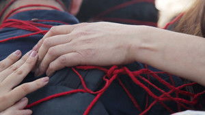 This performance takes place at the Puente de Cal y Canto bridge in Santiago de Chile, constructed during colonial times at the site where an Inka rope bridge had once connected the south and north of Chile. Vicuña invited friends and passersby to join in creating "a living knot" (un nudo vivo), to recover the memory of the sacred Mapocho Valley and its river, now deeply contaminated. This is one of several "performance-knots" of her Quipu Mapocho, conducted between 2016 and 2017.
