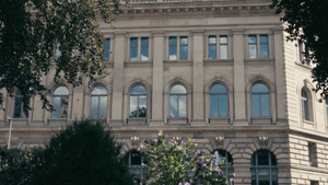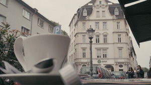 A melancholic look at Mainz's Jubiläumsbrunnen, whose decayed charm is in a state of conflict with other buildings in Mainz.