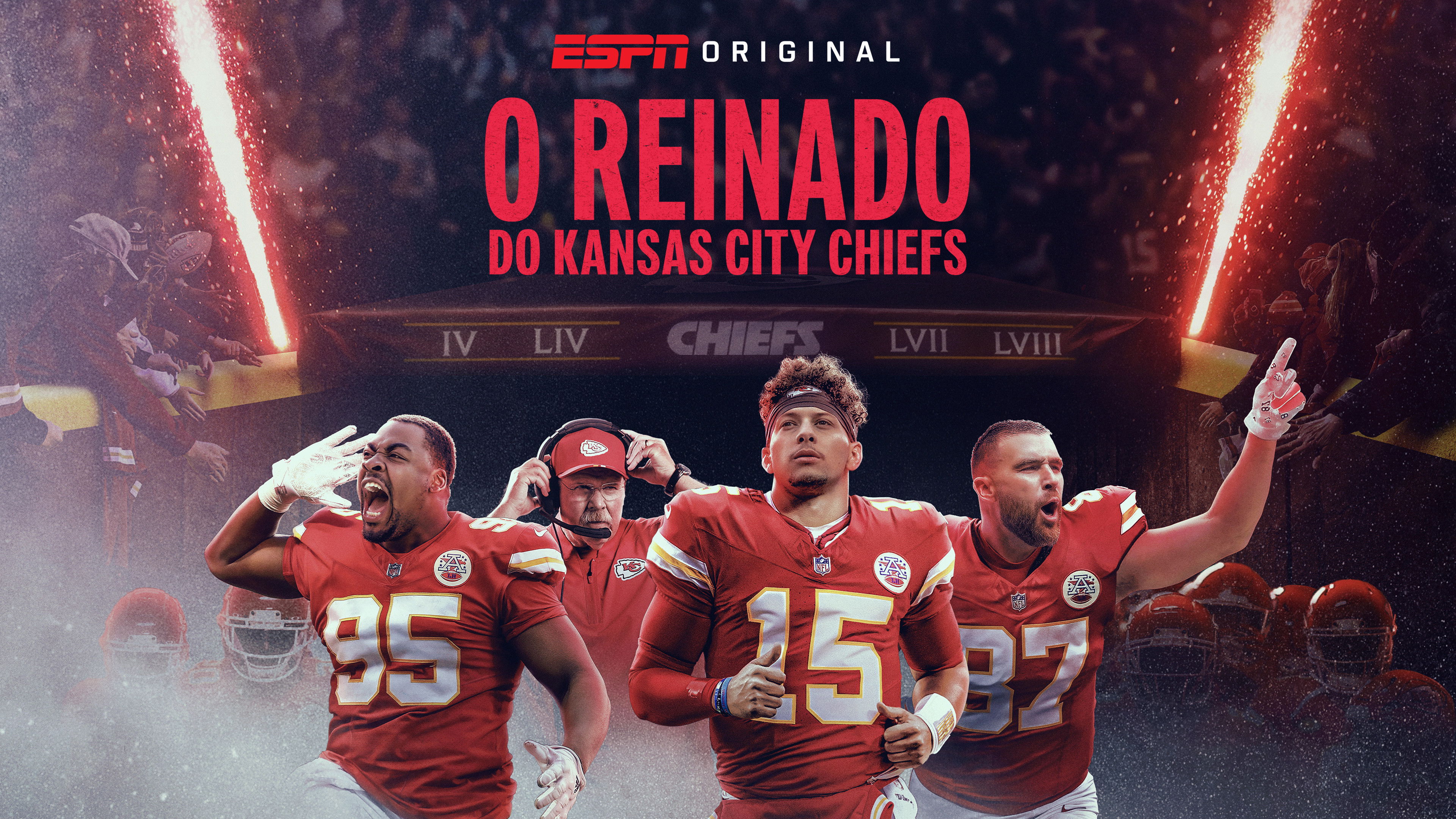 In 2024, the two-time defending champion Kansas City Chiefs aimed to make history by becoming the first NFL team to win three straight Super Bowls. "The Kingdom" – a new six-part ESPN Original Series – chronicles the Chiefs’ dramatic pursuit of a three-peat, the legacy of the franchise, and the unforgettable characters who built its modern-day football dynasty.